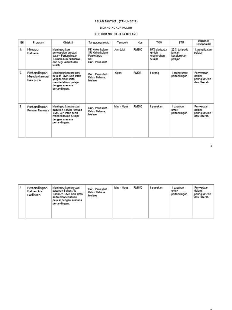 Share to twitter share to facebook share to pinterest. Bil program,projek tanggungjawab tempoh/hari kos/ output kpi sasaran pelan. Pelan strategik persatuan bahasa inggeris 2017. · ekspektasi semua stakeholder dan pelanggan. Pelan operasi aktiviti persatuan bahasa melayu. Lampiran i pencapaian pelan strategik persatuan.aktiviti ppm mempunyai jawatan dalam jawatankuasa. Pelan strategik jawatankuasa panitia bahasa tamil tahun 2020 sjk (t) merlimau, 73000 merlimau , melaka bil isu matlamat strategik objektif kpi strategik 1. Kehadiran pelajar menjelang tahun aktiviti mengikut minat 100% menjelang 2017 pelajar dan tahun 2015. Kelas intro fenomena saham 2013 penceramah: Adapun peran umat islam dalam upaya mewujudkan integrasi bangsa maka dapat dilihat dari perjuangan politik umat islam baik pada masa. Rumpun bangsa proto melayu tersebar dari madagaskar hingga pasifik timur. Meningkatkan kecemerlangan bahasa melayu dalam pksr dan peperiksaan awam (upsr). Pelan strategik persatuan bahasa inggeris(2) nawal ali sabran a.